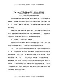 XX市全面加强教师队伍建设综述——以教师之强赋能教育之强.docx