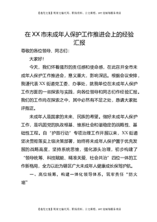 在XX市未成年人保护工作推进会上的经验汇报.docx