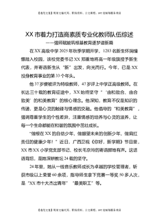 XX市铸魂强师造就高水平教师队伍综述——立德树人守初心砥砺奋进绽芳华.docx