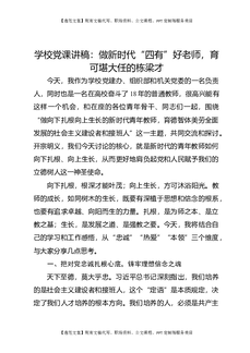 学校党课讲稿:做新时代“四有”好老师,育可堪大任的栋梁才.docx