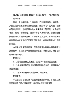 三年级心理健康教案:鼓起通气,面对困难.docx