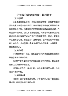 四年级心理健康教案:超越嫉妒.docx