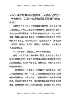 2025年主题教育专题党课:深学笃行党的二十大精神,为高中教育高质量发展凝心铸魂.doc