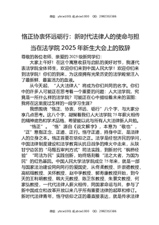 恪正协衷怀远砺行:新时代法律人的使命与担当在法学院2025年新生大会上的致辞.docx