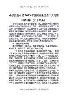 中学党委书记2025年度民主生活会个人对照检查材料(五个带头).docx