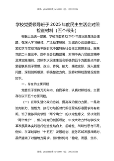 学校党委领导班子2025年度民主生活会对照检查材料(五个带头).doc