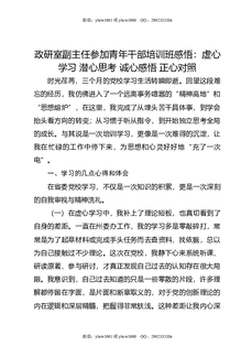 政研室副主任参加青年干部培训班感悟:虚心学习,潜心思考,诚心感悟,正心对照.doc