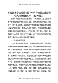 职业技术学院党委书记2025年度民主生活会个人对照检查材料(五个带头).doc