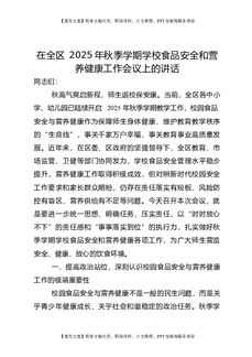 在全区2025年秋季学期学校食品安全和营养健康工作会议上的讲话.docx