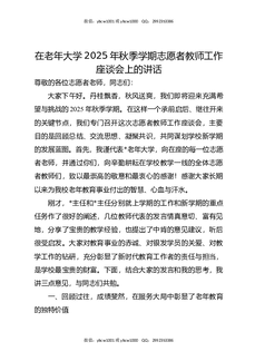 在老年大学2025年秋季学期志愿者教师工作座谈会上的讲话.docx