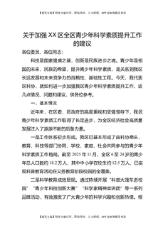 关于加强XX区全区青少年科学素质提升工作的建议.doc