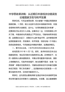 中学思政课讲稿:从近期日本首相涉台错误言论看国家主权与和平发展.doc