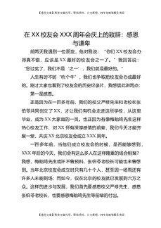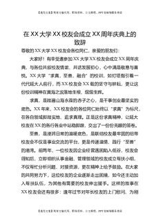 在XX大学XX校友会成立XX周年庆典上的致辞.doc