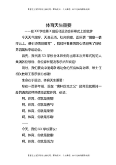 在XX学校第X届田径运动会开幕式上的致辞:体育天生重要.doc