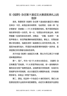 在《视野》杂志第X届征文大赛颁奖典礼上的致辞.doc