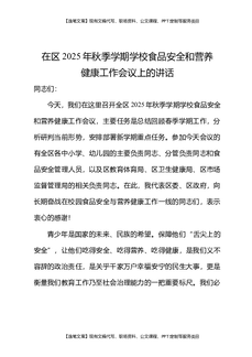 在XX区2025年秋季学期学校食品安全和营养健康工作会议上的讲话.docx