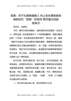 党课:向下扎根铸魂育人,向上生长勇担使命,做新时代“四有”好老师,育可堪大任的栋梁才.docx