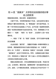 在XX区“返家乡”大学生社会实践总结分享会上的发言.docx