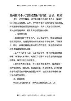 党员教师个人对照检查材料问题、分析、措施.doc