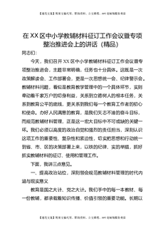 在XX区中小学教辅材料征订工作会议暨专项整治推进会上的讲话(精品).docx