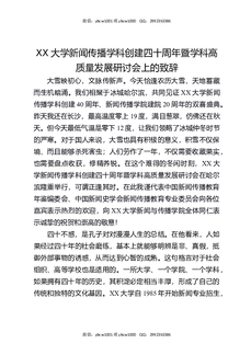 XX大学新闻传播学科创建四十周年暨学科高质量发展研讨会上的致辞.docx