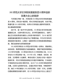 XX师范大学文学院恢复建系四十周年创新发展大会上的致辞.docx