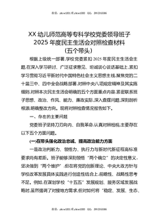 XX幼儿师范高等专科学校党委领导班子2025年度民主生活会对照检查材料(五个带头).docx