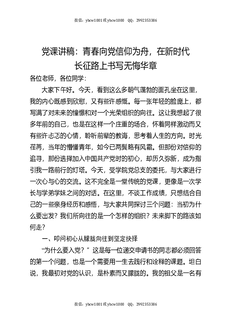 党课讲稿:青春向党信仰为舟,在新时代长征路上书写无悔华章.docx