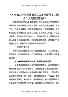 XX市第二中学党委书记2025年度民主生活会个人对照检查材料.doc