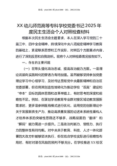 XX幼儿师范高等专科学校党委书记2025年度民主生活会个人对照检查材料.docx