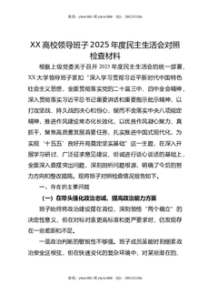 XX高校领导班子2025年度民主生活会对照检查材料.doc