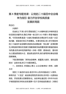 第X季度专题党课:以党的二十届四中全会精神为指引,奋力开创学校高质量发展新局面.docx