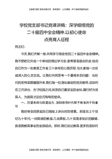 学校党支部书记党课讲稿:深学细悟党的二十届四中全会精神,以初心使命点亮育人征程.docx