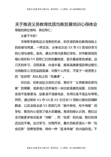 关于推进义务教育优质均衡发展培训心得体会.docx