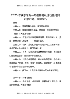 2025年秋季学期一年级开笔礼活动主持词:启蒙之笔,立德立行.docx