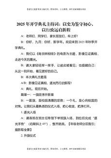 2025年开学典礼主持词:以史为鉴守初心,以行致远启新程.docx