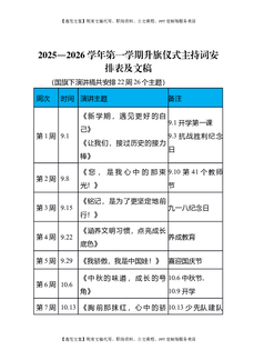 2025-2026学年第一学期升旗仪式主持词安排表及文稿.docx