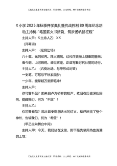 X小学开学典礼暨抗战胜利80周年纪念活动主持稿.docx