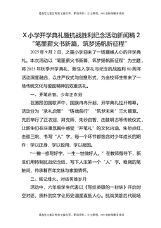 X小学开学典礼暨抗战胜利80周年纪念活动新闻稿.docx
