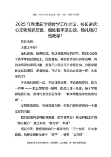 2025 年秋季新学期教学工作会议,校长讲话:心无旁骛抓质量,细处着手见实效,稳扎稳打做教学!