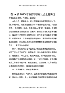 在XX镇2025年教师节表彰大会上的讲话.docx