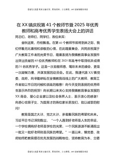 在XX镇庆祝第41个教师节暨2025年优秀教师和高考优秀学生表扬大会上的讲话.docx