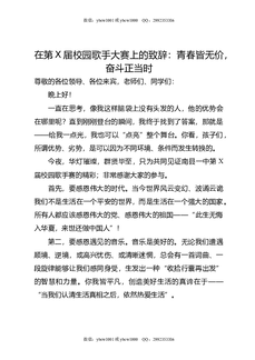 在第X届校园歌手大赛上的致辞:青春皆无价,奋斗正当时.doc