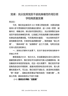 党课:充分发挥党员干部先锋模范作用引领学校高质量发展.docx