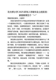 在大桥小学2025新生入学家长会上的发言:家庭教育五个“一”.docx