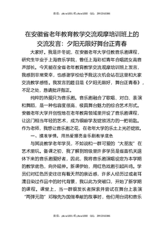 在安徽省老年教育教学交流观摩培训班上的交流发言:夕阳无限好舞台正青春.docx