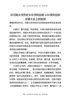 在河南大学历史文化学院创建100周年创新发展大会上的致辞.docx