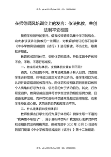 在师德师风培训会上的发言:依法执教,共创法制平安校园.docx