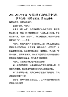 2025-2026秋季学年第一学期学生国旗下演讲稿(22周):第16周,暖暖冬至情,浓浓文化味-冬至.docx