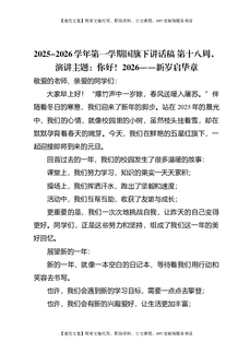 2025-2026秋季学年第一学期学生国旗下演讲稿(22周):第18周,你好!2026,新岁启华章-元旦.docx
